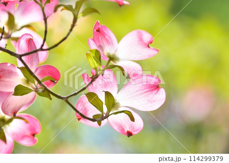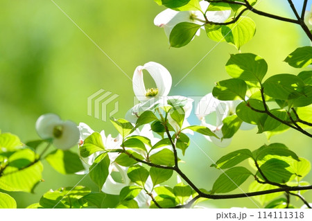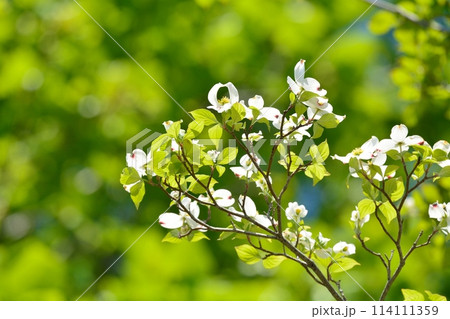爽やかな初夏に咲くハナミズキと新緑
