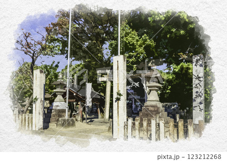 水彩画風 一宮 大神神社 鳥居 愛知県一宮市