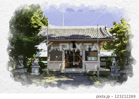 水彩画風 一宮 大神神社 拝殿 愛知県一宮市