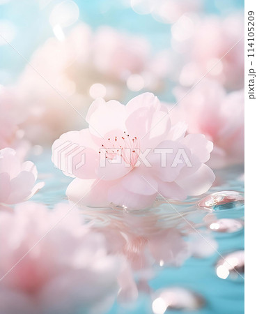 波打つ水面に浮かぶ桜の花(AI生成画像)