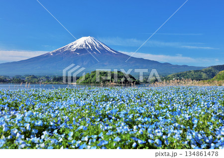 初夏の青空とネモフィラの風景 そして富士山