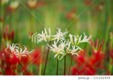白い彼岸花と赤い曼珠沙華のコントラスト