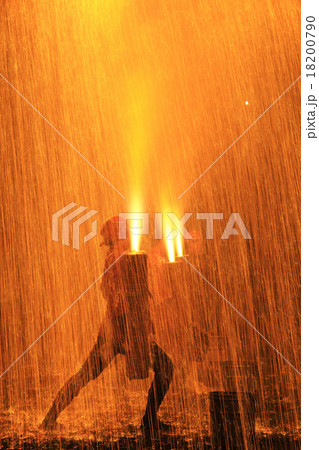 とよはし祇園祭の手筒花火 祭りの火の粉 炎