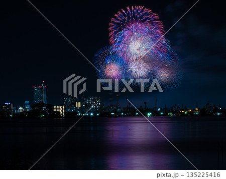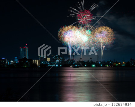 霞ヶ浦から見る土浦全国花火競技大会(茨城県)