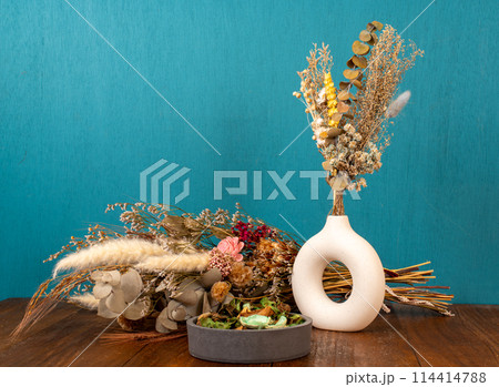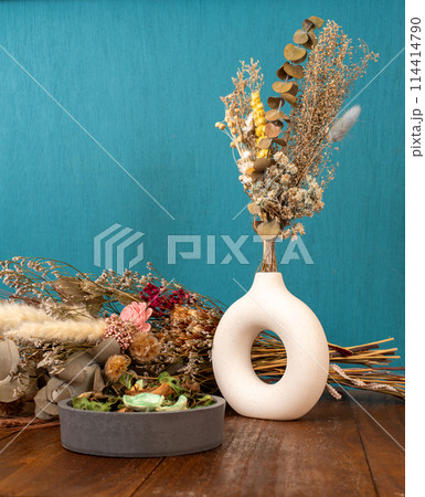 ドライフラワーと青の背景