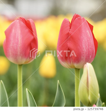 ふんわり可愛い赤いチューリップ カラフル 笑顔になる