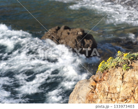 晩秋の伊勢志摩 荒波押し寄せる安乗岬に咲くイソギク