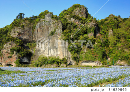 ネモフィラと競秀峰・青の洞門