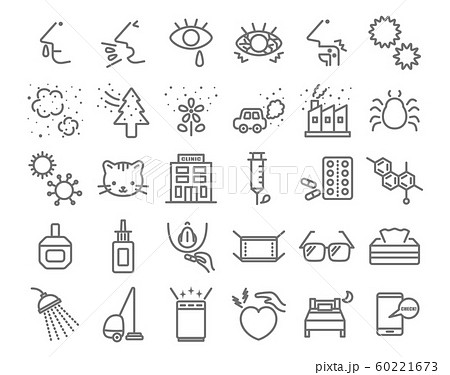 花粉症 アレルギー 症状と原因と治療 アイコンセット