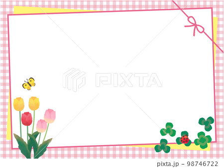 ギンガムチェックと春のイラスト(ピンク)