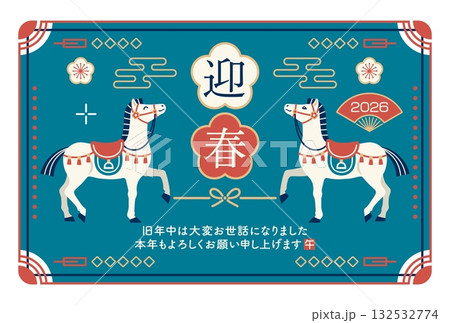 年賀状 2026 令和8年 午 正月飾り