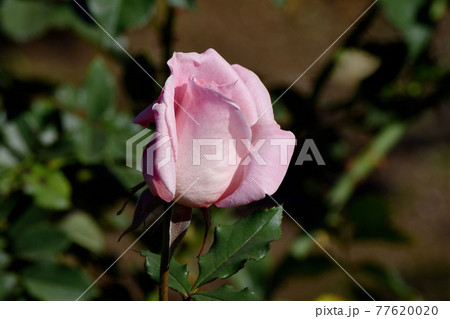 調布市深大寺元町の植物園に咲く淡いピンクのバラ(モダンローズ バイオレット・カーソン)の花