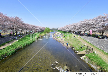 川沿いに咲く桜 満開の桜 桜 お花見 散歩 桜見物 名古屋市 山崎川