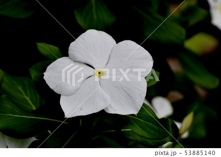 三鷹中原に咲く白いニチニチソウ(ビンカ)の花
