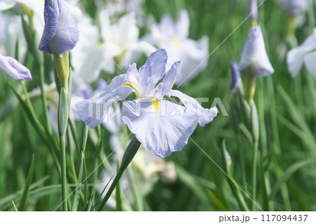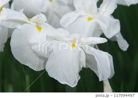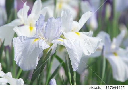 菖蒲園に咲く白い花菖蒲クローズアップ【相模原公園:花背景】