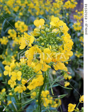 菜の花は春の柔らかい日差しの中で満開に、その黄色い花もまた優しい黄色で見る人を和やかに