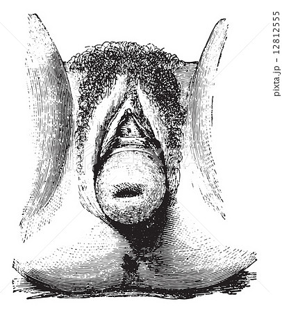 Uterine prolapse or pelvic organ prolapse, vintage engraving.