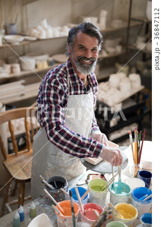 Portrait of male potter holding color tube
