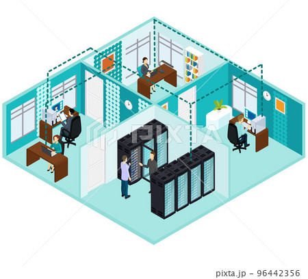 Interior Server Room Isometric View. Vector