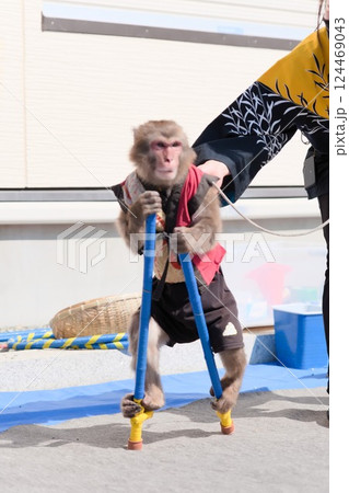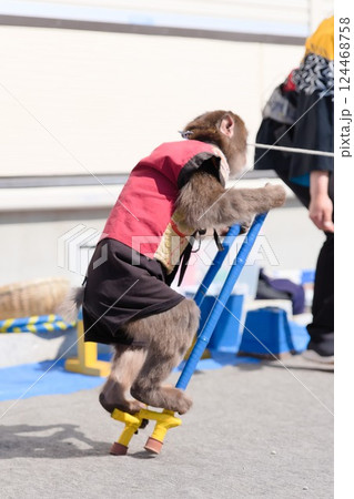 観客を魅了する猿の華麗な芸 - 猿回しの一場面 -