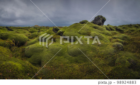 Lava field covered with moss in summer, Iceland