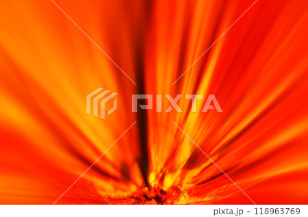 赤黄オレンジ色の激しい閃光が宙に向かって鋭く拡散する抽象的イメージ