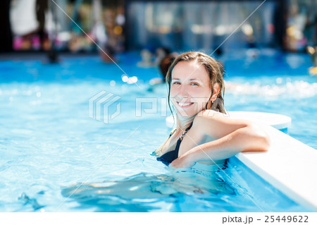 Beautiful young smiling woman in the pool