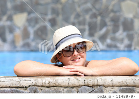 Young beautiful lady relaxing in swimming pool