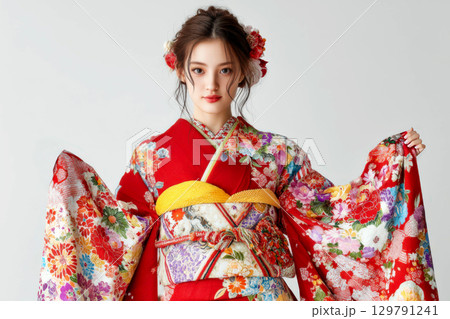 成人式の振袖を着た女性
