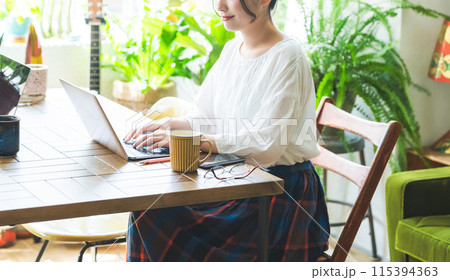 パソコンを操作する若い女性 カメラ目線の笑顔