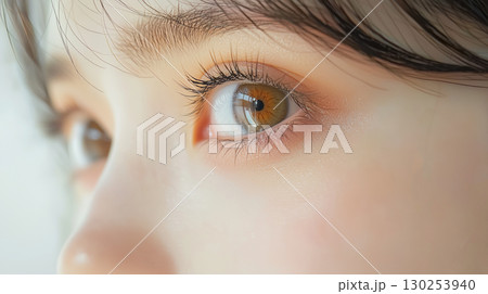 若い女性の目元のクローズアップ。美容、ビューティー、健康、スキンケア、化粧品