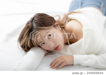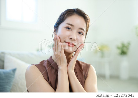 ソファでくつろぐ20代女性 ビューティーイメージ