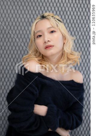 若い日本人女性のファッションポートレート 首筋 耳 ほお