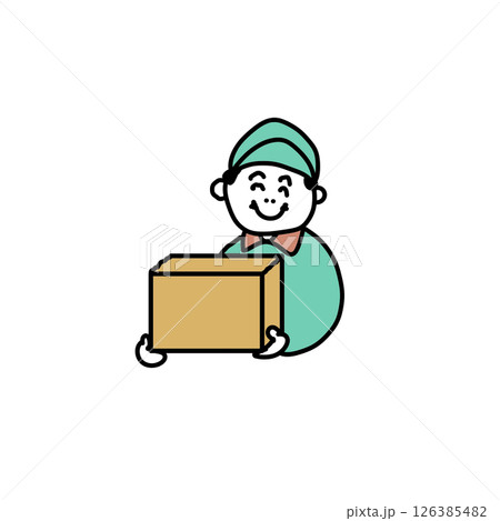 作業服を着た初心者マークを持つ笑顔のデフォルメ男性のイラスト