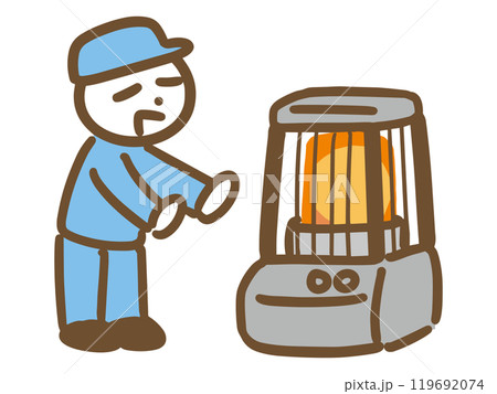 無表情でパソコンを使うスーツの若い男性の線画イラスト