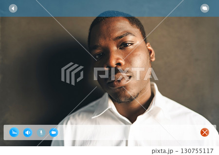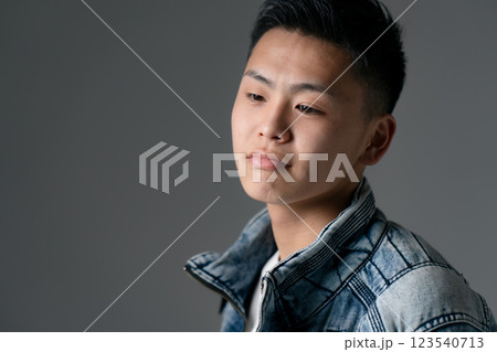 Confident young man posing indoors with a serene expression in a neutral-toned setting