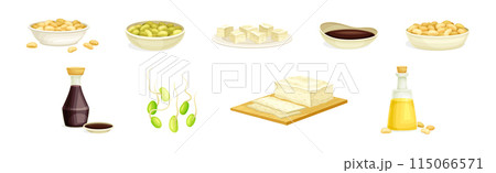 Soya Product from Edible Legume Plant Vector Set