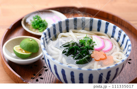 注意)湯気はレタッチ合成です。湯気の立つ「うどん(煮かけ)」。饂飩、ウドン。