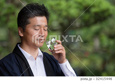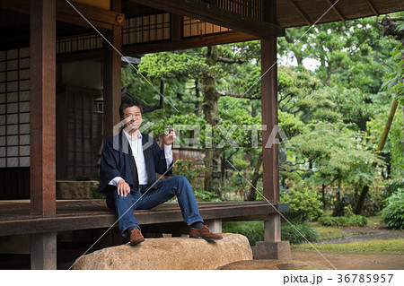 日本酒 酒蔵 ミドル 男性 日本庭園 イメージ