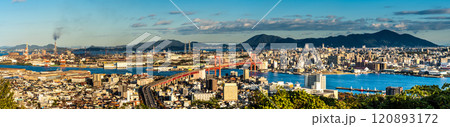 高塔山公園から若松戸畑の夕景 パノラマ【福岡県北九州市】