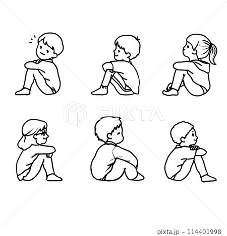 手描きの笑顔のかわいい子供達の顔アイコン 白黒 多様性 10代 20代