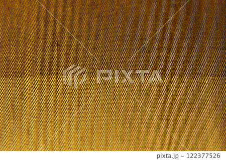 上下に黄茶色と茶色の二色に染め分けられた荒目の織物布