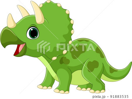 Cartoon funny little triceratops on white background