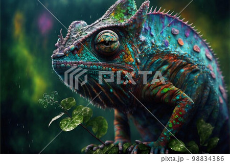 Chameleon on tree bamboo. Generative Ai
