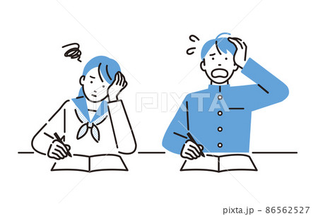 シンプル イラスト 学生の男女のネガティブな表情のセット