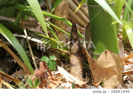 地面から突き出た竹(真竹、マダケ、タケノコ)