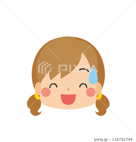 冷や汗をかいて笑う可愛い小さな女の子のイラスト 絵文字 アイコン 顔 表情 白背景 ベクター