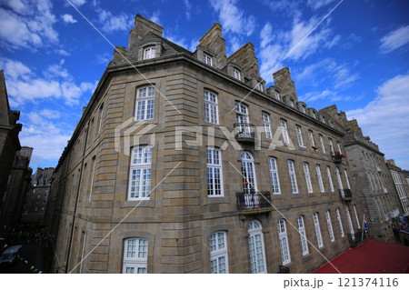 中世の街並みが残る城壁の街であるサン・マロのライトアップされたサン・マロ城