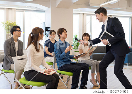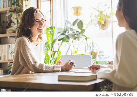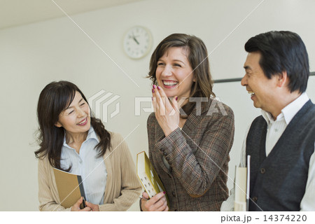 英会話教室の西洋人の先生を若い女性 撮影協力:中央工学校付属日本語学校