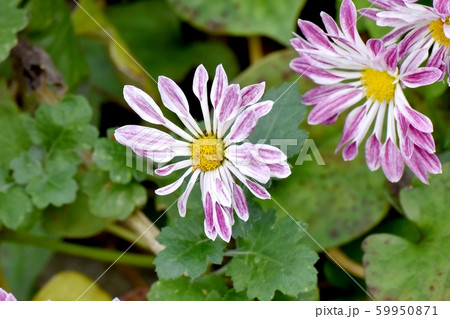 調布市の植物園に咲く中輪で紫色のサガギク(嵯峨菊・古典菊)